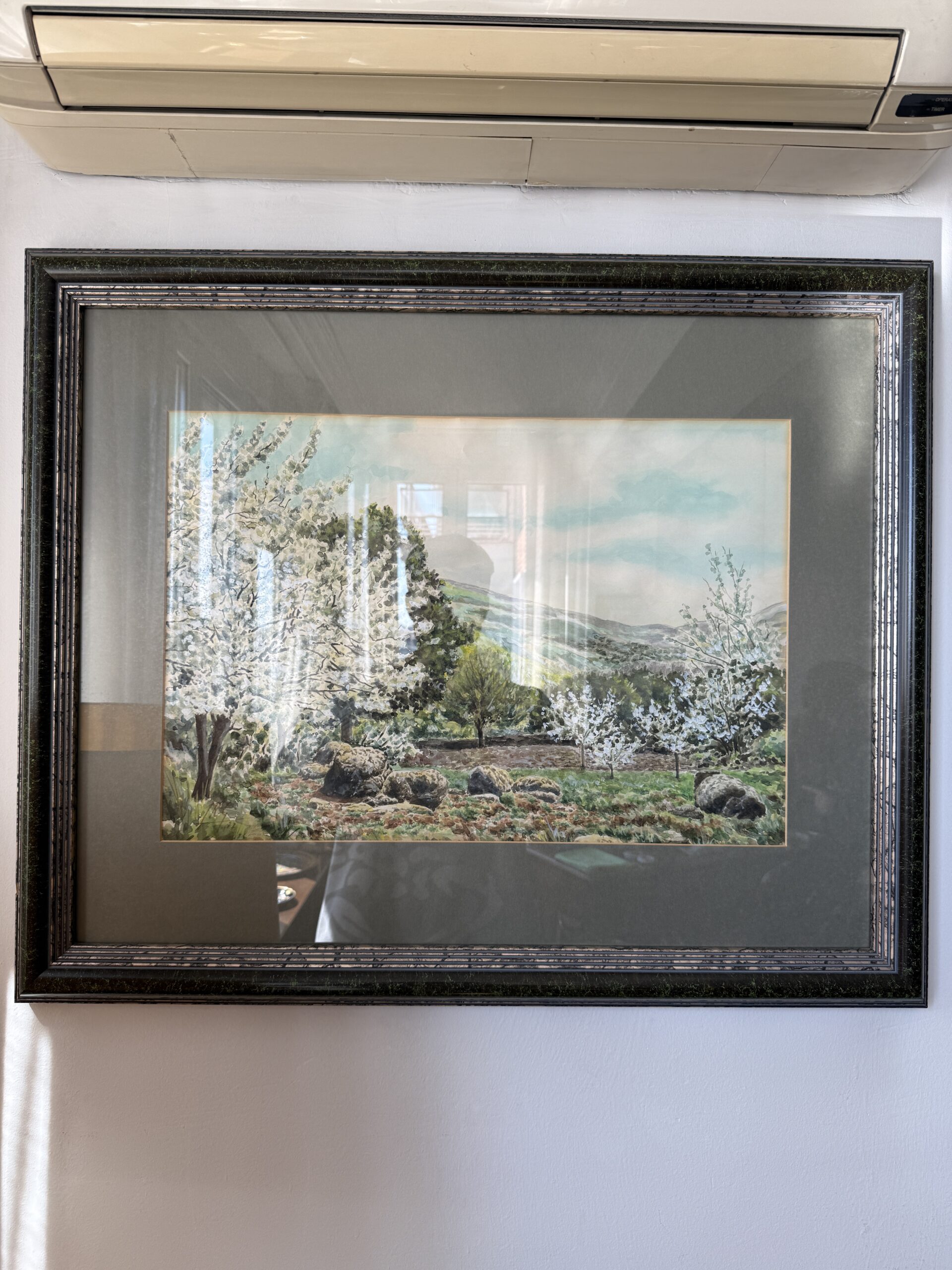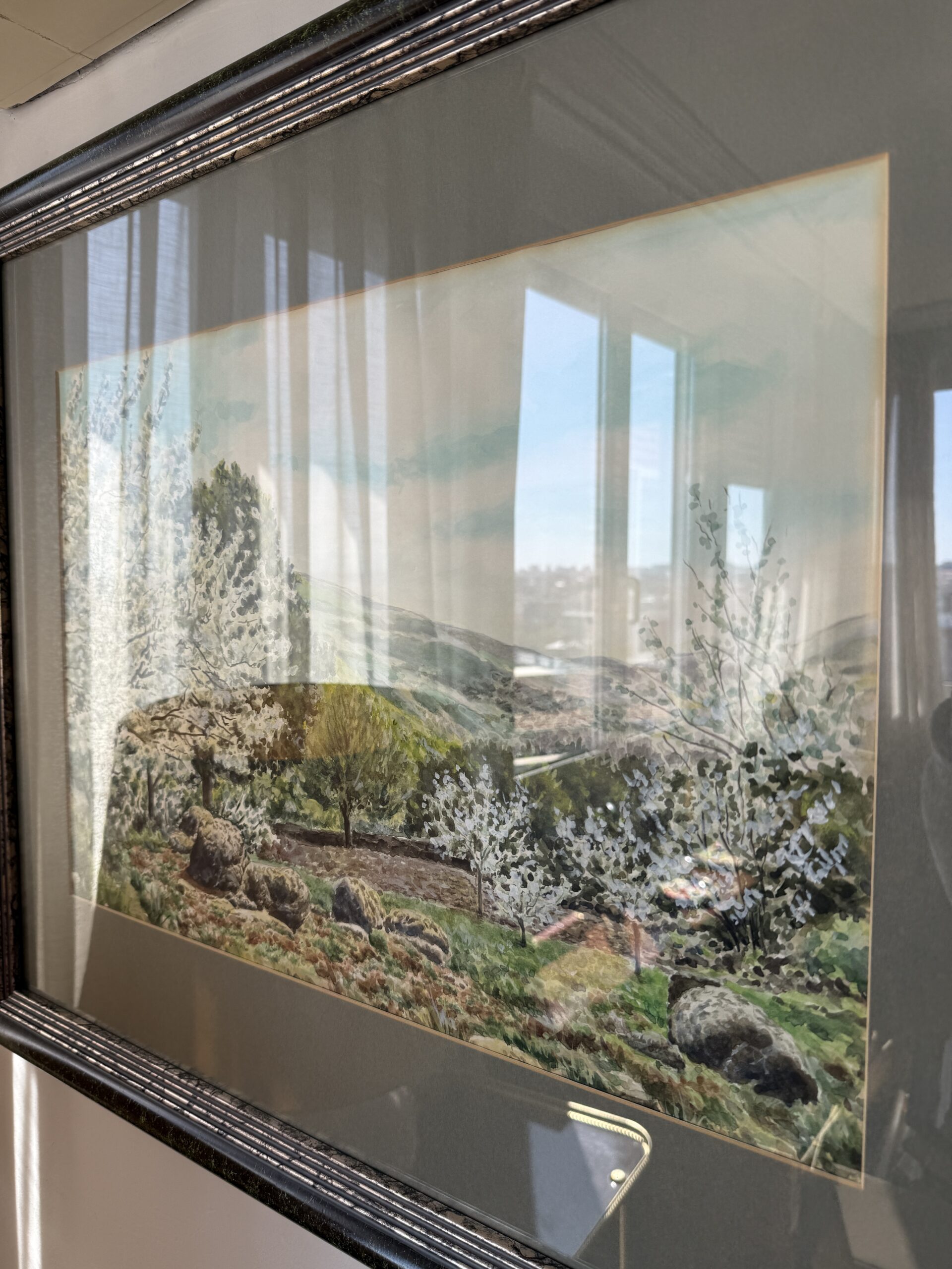 Cuadro enmarcado con lámina de paisaje en acuarela y marco decorativo