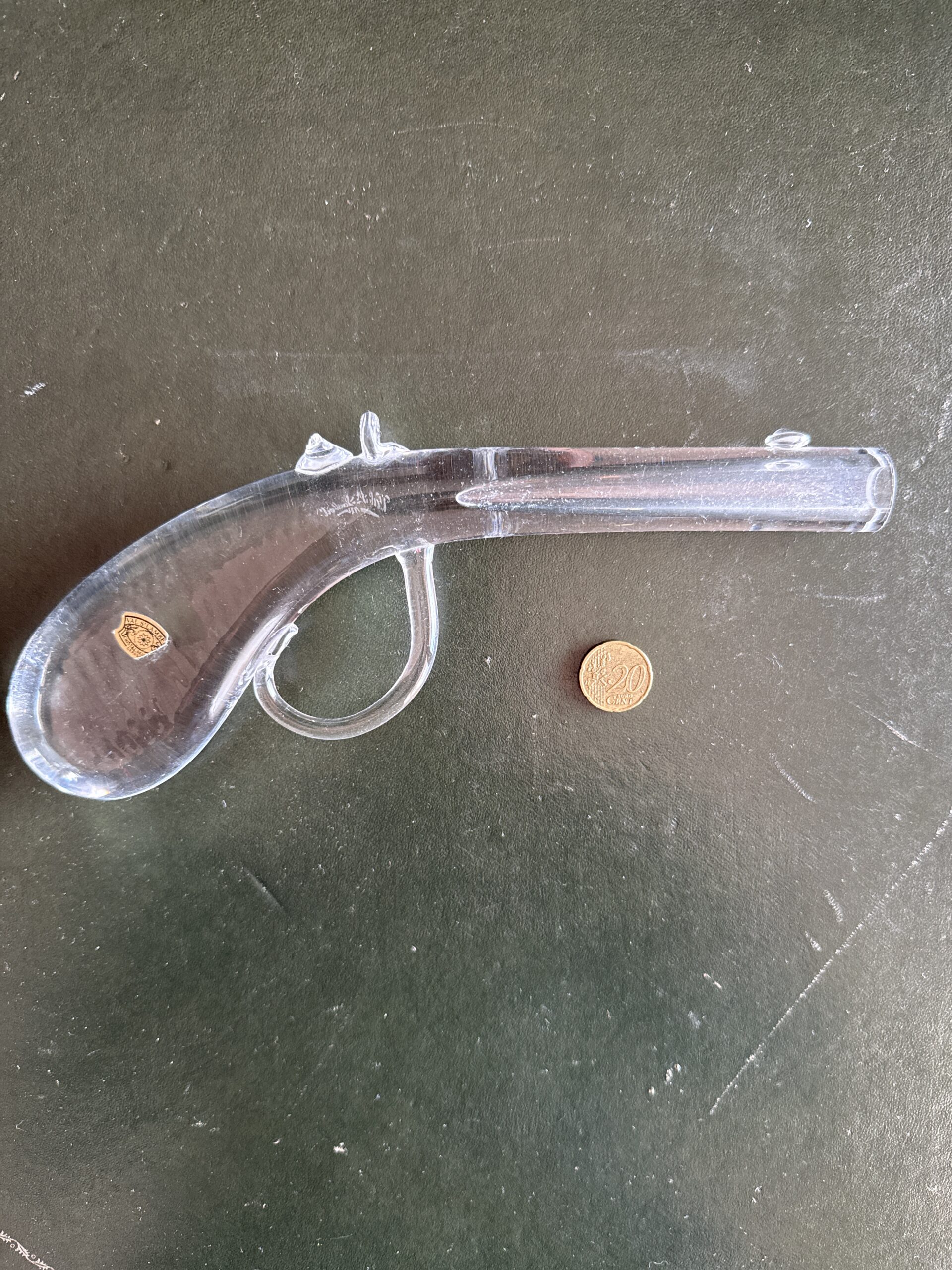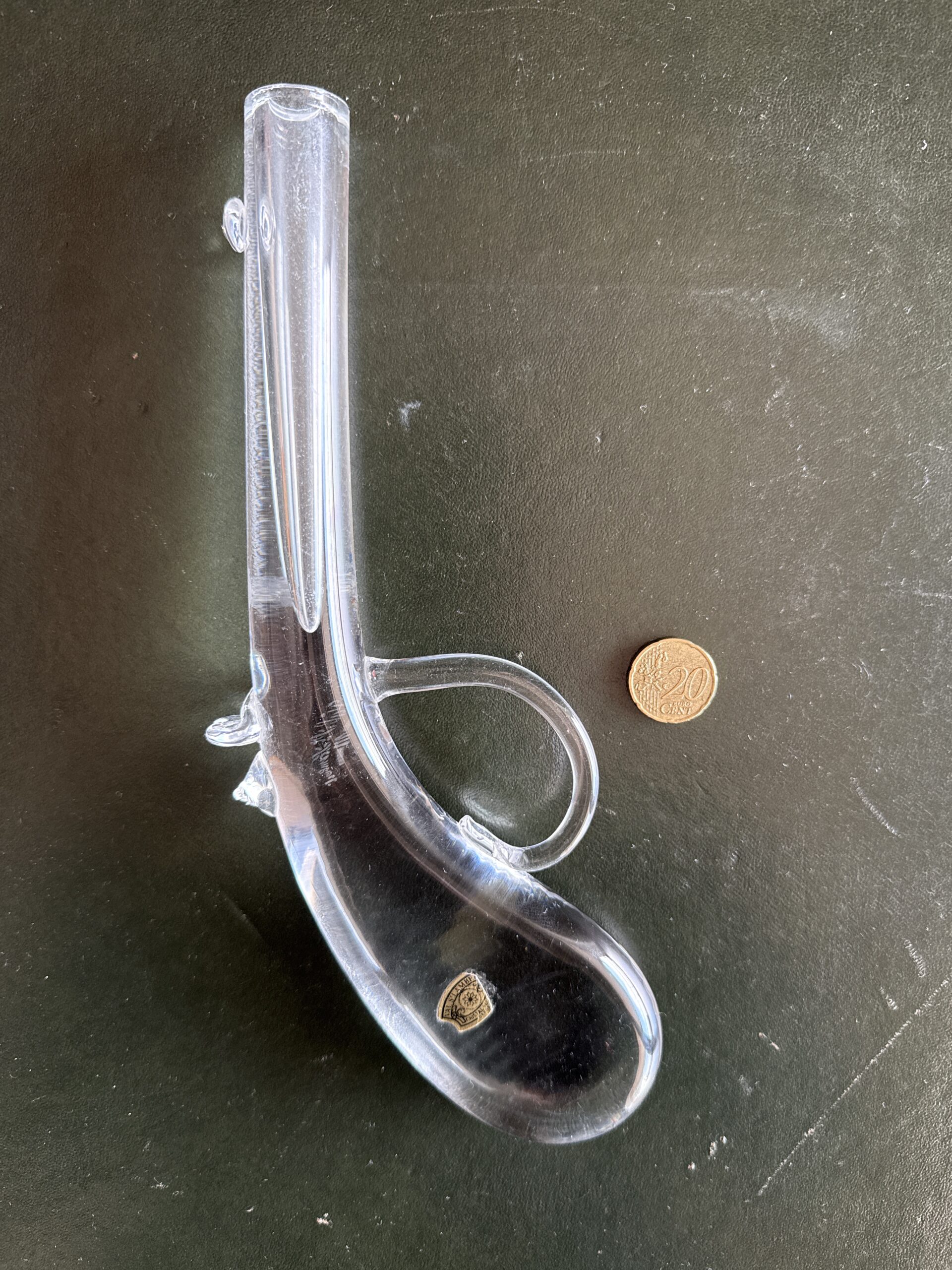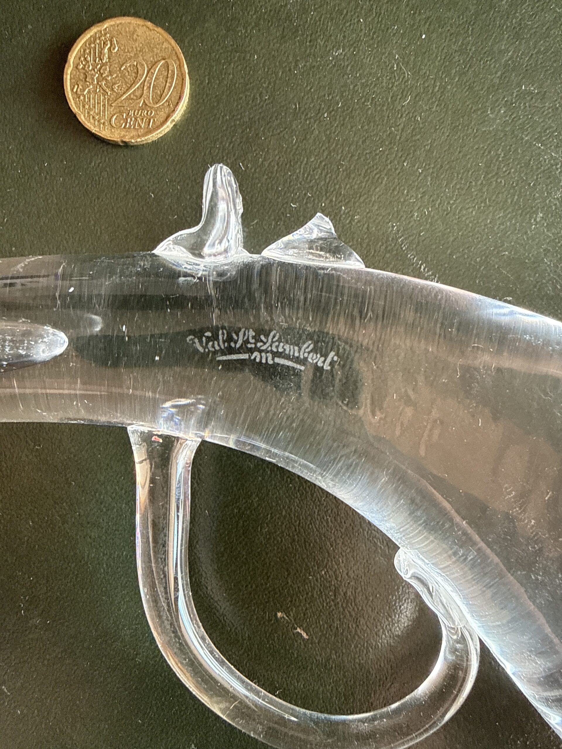 Pieza de cristal con forma de pistola de la firma Val Saint Lambert (Bélgica), con sello original.